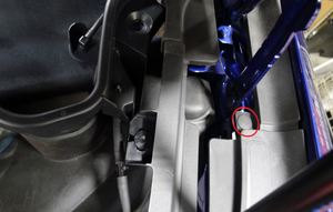 注折叠右侧主支撑地毯,然后旋转右侧脚踏板将其从车上拆下