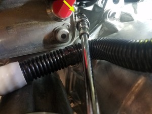注1 个弹簧夹;取下冷却液连接处两端的塞子;执行推拉推测试以确保软管完全就位。