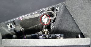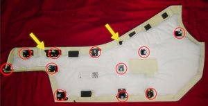 4 个卡子,释放卡子并向上拉起维修面板以够到线束。使用 90 度塑料饰板工具