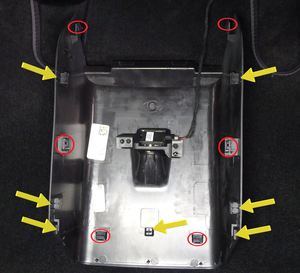 6 个卡子,7 个固定销。最后再拆下底部卡子并将其向后拉,确保操作中不移位