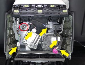 6 个螺钉,T20,1 Nm;1 个连接器;3 个锁片,将气浪型出风口盖向后拉,然后向右拉,以便够到连接器