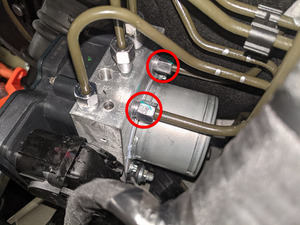 拆下将制动总泵制动软管连接到液压控制单元的螺母(2 个)。
