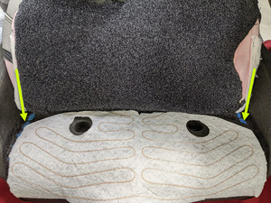 注2 个锁片;松开锁片以打开支架。将座椅泡沫从骨架拆下可避免布线时线束被卡住