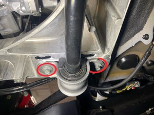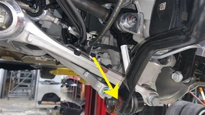 拆下将后平衡杆固定到副框架的螺栓(4 个),然后从车上拆下平衡杆。