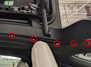- 安装将左后顶篷固定到车辆的卡子(8 个)。