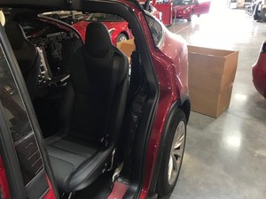 - 确保鹰翼门密封条位于左后门框硬盖板饰板后面。