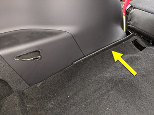 注首先将后边缘放置到位,然后将毡毯放置到鱼叉形支架上方,再将其塞到行李箱侧饰板下方。