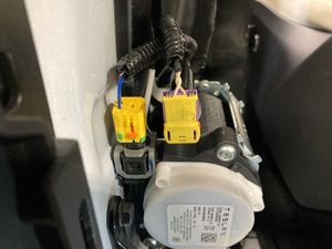 断开第一排左侧座椅安全带卷收器连接器(2 个)。