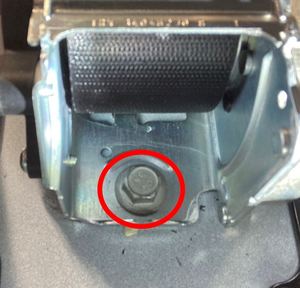 将第一排左侧座椅安全带卷收器放到车辆上,然后安装新螺栓,将卷收器连接到车辆上。
