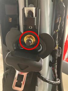 用一字螺丝刀逆时针转动前座椅安全带联动装置的锁止机构,以便将其从预紧器松开,然后将联动装置从预紧器上滑下并将其放置在一旁。