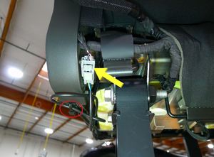 注将线束和张拉皮瓣移动到座椅靠背下面。