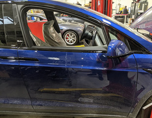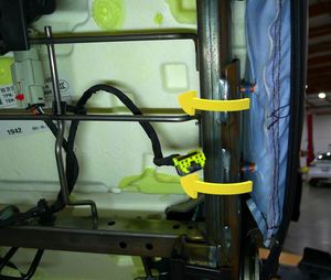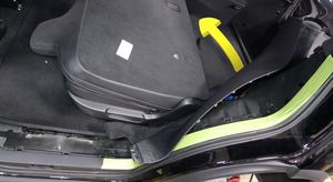- 从右侧下部 C 柱和门框硬盖板上撕下保护胶带。