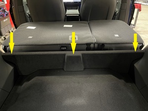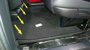注从前端开始,将毡毯提起放到鱼叉支架上,向后折叠直至可接触到后排座椅部件。