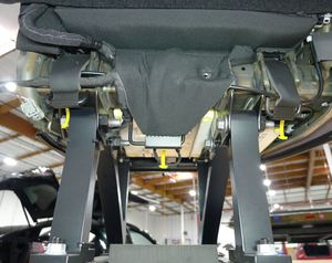 将 40 百分比座椅线束固定到右侧底板支撑支架上。