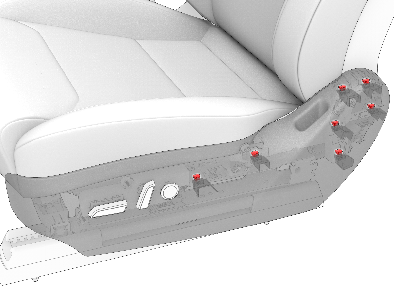 - 将电气线束连接到靠背和座垫调节开关总成上,然后确认座椅开关功能。