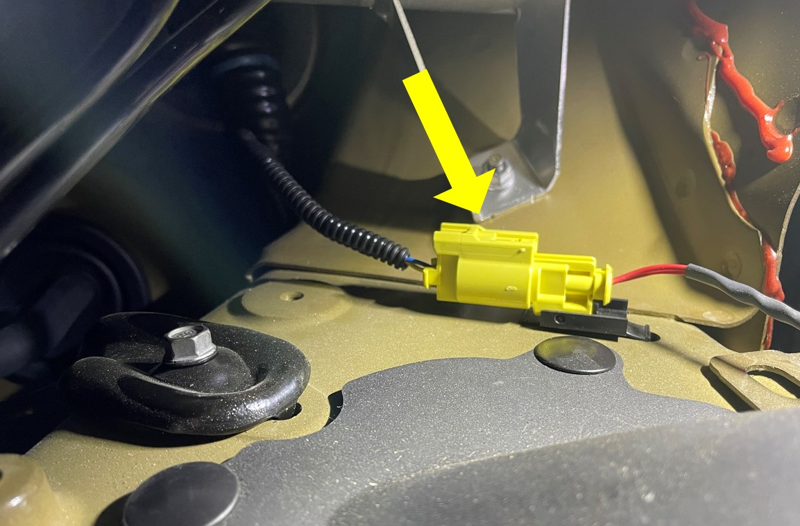 - 断开 LH 行人保护执行机构连接器,然后从车身上松开该连接器。