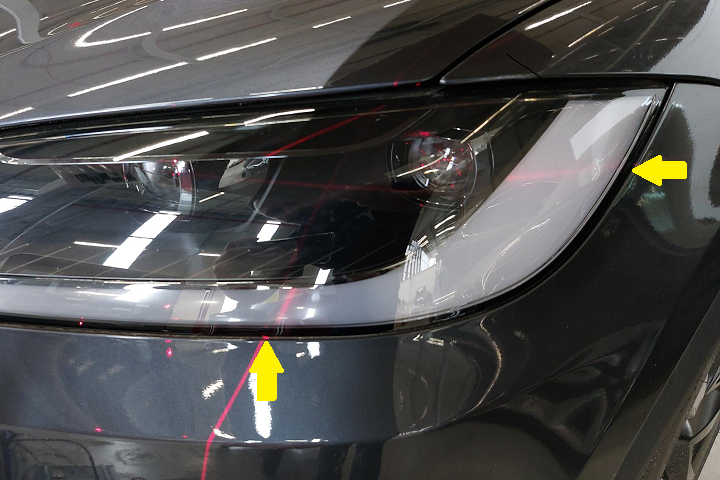 - Align the tool to the RH headlight (see steps 19 and 20).