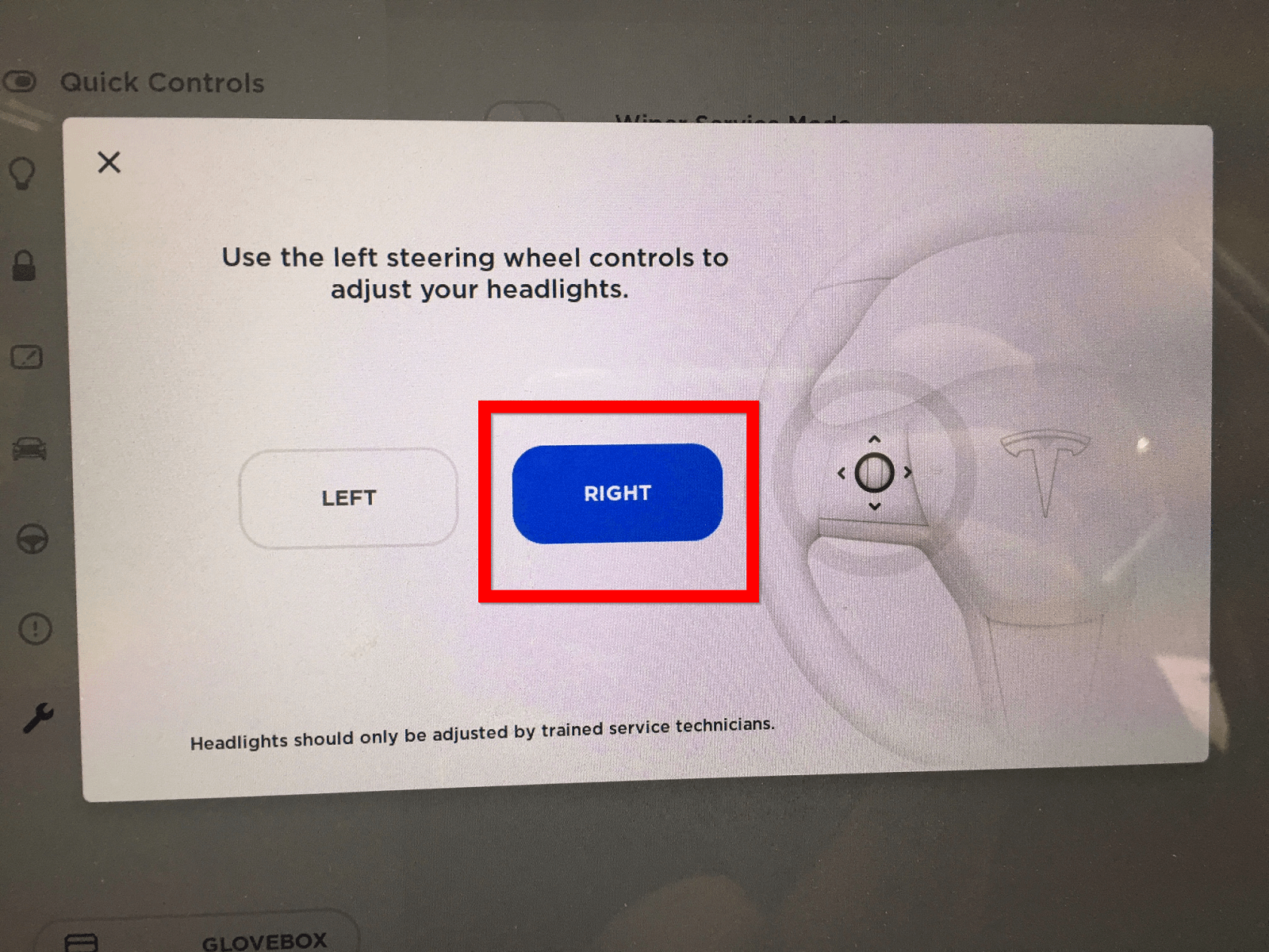 注Using the touchscreen, touch Controls > Service > Adjust Headlights.