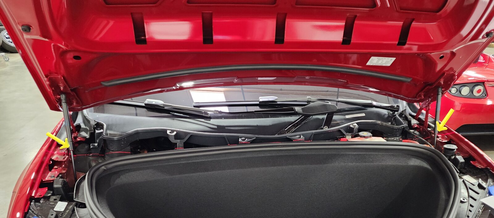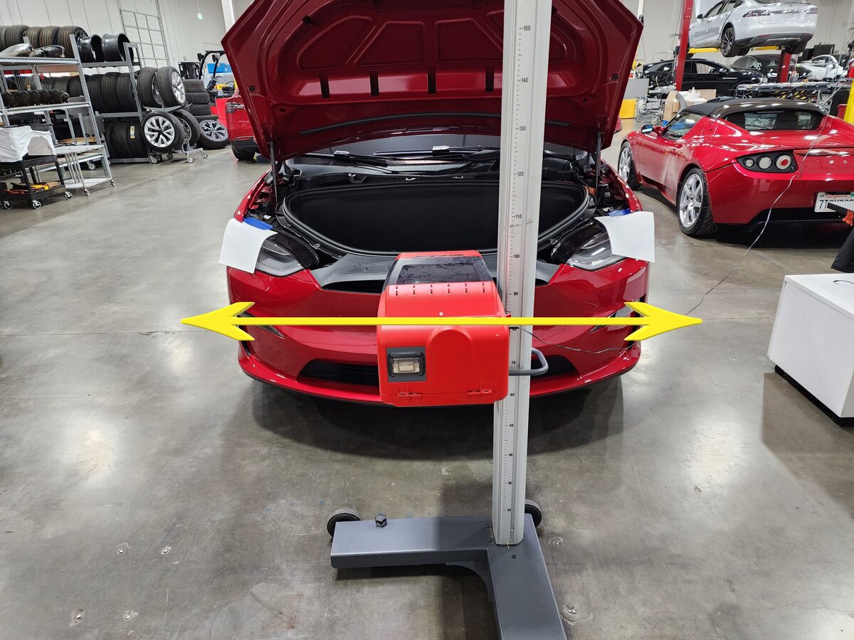 注If the headlight aimer can move between RH and LH headlights while maintaining the same laser angle projected onto the hood struts, it is set correctly - perpendicular to the car