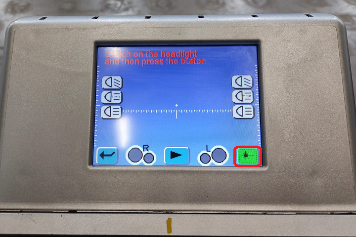 - Select the laser icon and adjust the tester horizontal and vertical position to align with the LH headlight markings.