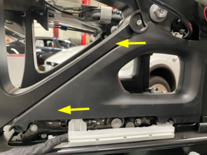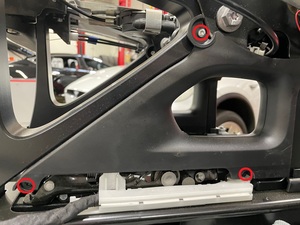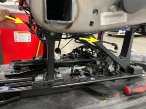 - 紧固右侧第二排座椅升降器右侧的线缆夹(2 个)。