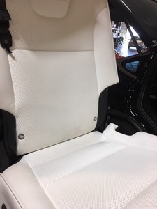 - 将右侧第二排座椅靠背塑料件安装到座椅靠背总成上,然后紧固用于将座椅靠背塑料件固定到总成上的卡子(5 个)。