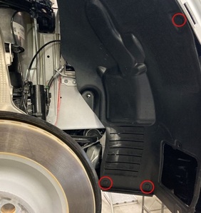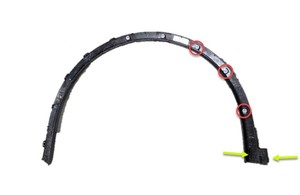 注2 个卡扣式螺母,11 个推拉铆钉;将轮毂内衬顶部的左侧锁片插入右侧卡槽中,确保轮毂内衬底边正确定位