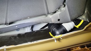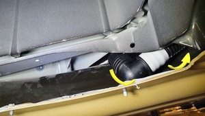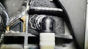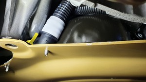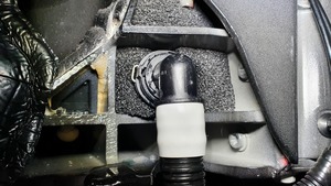 注1 个弹簧卡子;根据需要取下软管塞;必要时使用车间毛巾清理右侧门槛板内残留的冷却液;执行推拉推测试