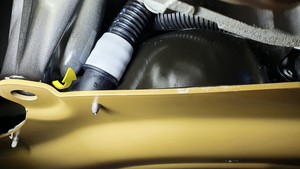注1 个弹簧卡子;根据需要塞住软管;必要时使用车间毛巾清理右侧门槛板内残留的冷却液