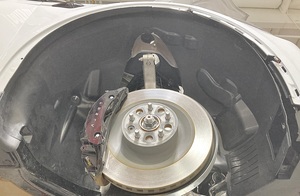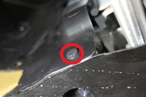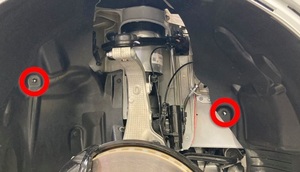 拆卸将前车底护板固定到前副车架的螺栓,然后拆下车底护板