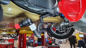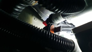从右侧门槛动力总成回流软管上断开右侧门槛至前备箱软管