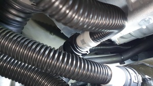 将右侧门槛至前备箱软管连接到前驱动单元 (FDU) 热交换器连接软管