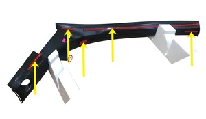 拆下胶带背衬,将左侧掀背车门槽板放置到车上,然后紧固用于将饰板固定到车辆上的夹子和胶带(5 个)。