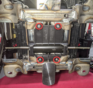 注将连接器按压到前挡条下方,这样可以避免安装座椅外套的时候损坏连接器。