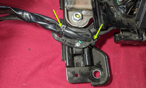 - 安装将左侧第二排座椅线束连接到线束支架的扎线带。