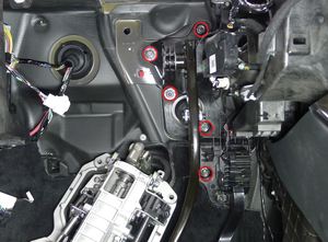 安装新的自锁螺母(5 个),将踏板总成连接到隔板。