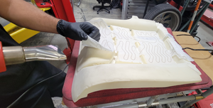 - 从座垫基板上拆下第三排左侧座垫泡沫。