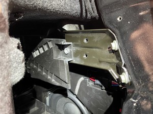 将后备箱右侧系紧支架放到车上,然后安装将支架固定到车辆的螺栓(2 个)。