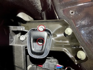 松开将后备箱右侧系带固定到支架的螺栓(2 个)。