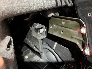 安装将后备箱右侧系带固定到支架上的螺栓(2 个)。