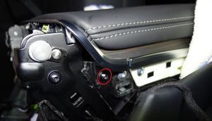拆下将中控台后亮条固定到中控台的螺钉(6 个),然后从中控台上拆下亮条