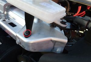 注将储液罐及其支架旋出左侧固定悬架传感器 (LH FST) 盖。 -