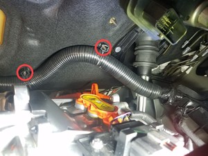 - 松开将前备箱线束连接到车身的卡子(2 个)。