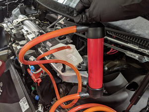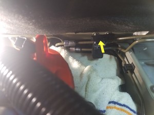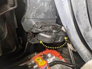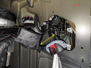 - 将液压控制单元电子控制单元 (HCU ECU) 线束和连接器穿过车身后穿入前备箱区域。