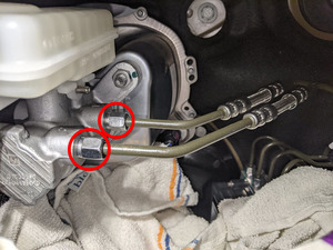 从液压控制单元 (HCU) 管束左侧断开制动管路。