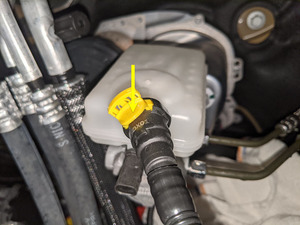 松开锁片,然后从制动液储液罐上断开远端储液罐连接软管。