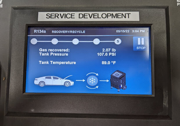 警告R134a 和 r1234yf 制冷剂属于危险液体,如果处理不当,可能导致严重伤害。回收或重新加注空调系统时,必须穿戴适当的个人防护装备 (PPE),包括面罩、隔热手套、橡胶靴、围裙或防水工作服。
