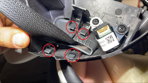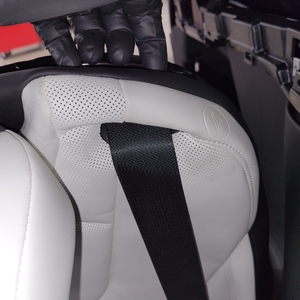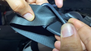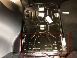 - 从第三排开始,将座椅盖的顶部外侧部分和泡沫向外拉,就可以看到左侧第三排的座椅安全带孔罩