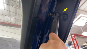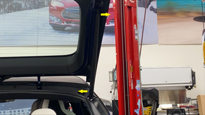 将掀背车门气体支柱放到车内,然后用力将支柱的每一端推到气体支柱球头螺柱上。
