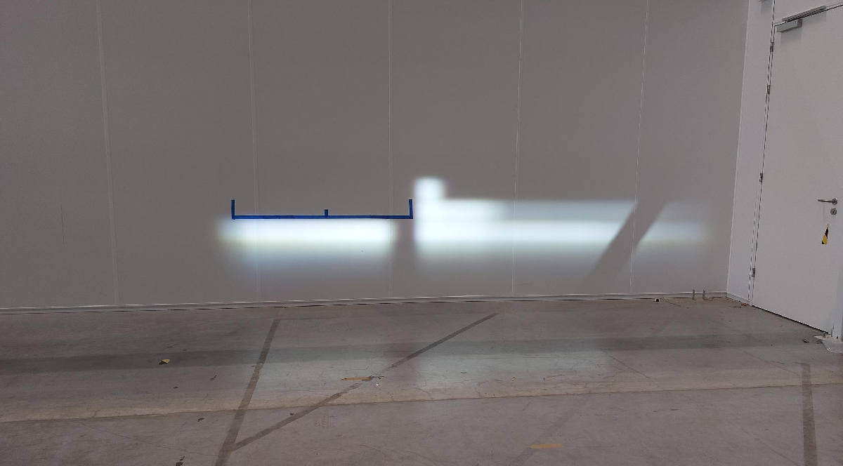 - Find the target's center line by projecting a laser perpendicular to the wall onto the center point of the vehicle. Mark the center position with a piece of tape, vertically on the wall.